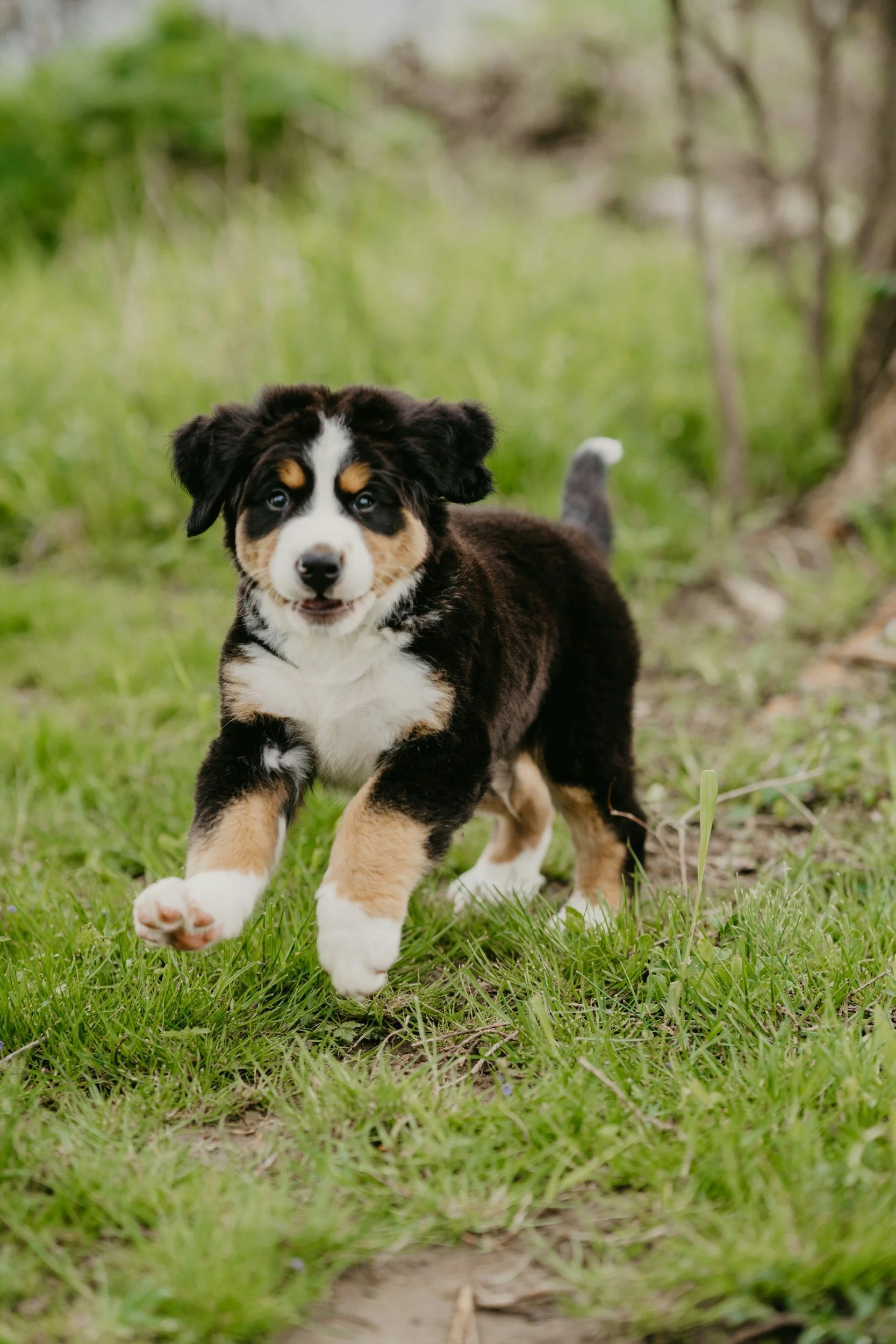 Our puppy board and train programs teach marker words, basic obedience commands, leash walking, and crate and house training. Slip lead, long line, and place cot are included.